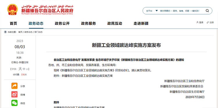 開展高溫熱泵等電能替代 新疆發布工業領域碳達峰實施方案