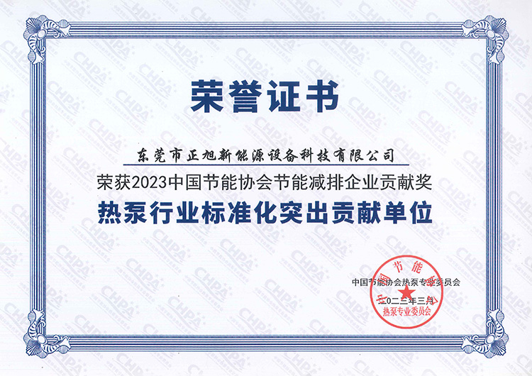 實(shí)力見證!正旭榮獲2023中國節(jié)能協(xié)會(huì)節(jié)能減排企業(yè)貢獻(xiàn)獎(jiǎng)暨熱泵行業(yè)標(biāo)準(zhǔn)化突出貢獻(xiàn)單位