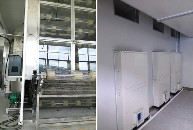 位于桂林的米粉生產商,基地設置了20個烘干房,以前都是用空調來烘干,烘干效果很不理想,使用費用還比較高。自從改用正旭熱泵烘干機后,生產效率提高了30%~40%,米粉生產的次品率由20%降至1%以下。正旭熱泵烘干機使得烘干房內無死角送風,每個角落的溫度都相同,整個米粉烘干工藝得到了保障,烘干的成本也大大降低,還解決了由于溫度波動大而引起的霉菌超標問題。