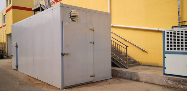 下一步就是安裝主機,安裝前要先進行主機和墻板的定位,確保出風口與回風口不被遮擋,且主機與庫板之間預留縫均勻,主機一般放置在板房窄的一側,通常要裝一個坐墊、底下約10公分的鋼槽,并安上橡皮墊減震。安裝完主機還要安裝風道和排水管,風道要根據出風口位置和循環風類型而定,大小比回風口大一點即可,管道要稍微加彎角并做好保溫措施,用鋁皮進行包裹。排水管一般采用pvc20的管道進行連接。