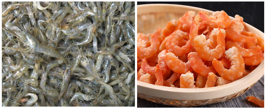 3、按以上的干燥步驟,用蝦米熱泵烘干機(jī)烘出的蝦干體形完整、外觀整潔,色澤自然,呈淡黃淡紅而有光澤,肉質(zhì)豐滿,蝦身彎曲,帶獨(dú)特的自然鮮香。