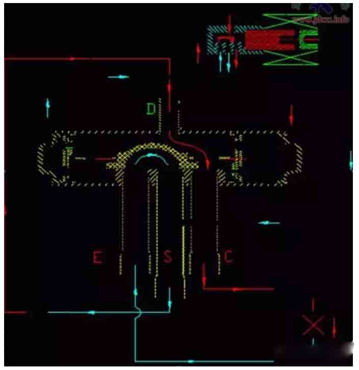2. 當主滑閥運動到中間位置時,四通閥的E、S、C三條接管相互導通,壓縮機排出的冷媒從四通閥D接管直接經E、C接管流向S接管(壓縮機回氣口),使壓力差快速降低,形成瞬時串氣狀態(中間流量狀態)。