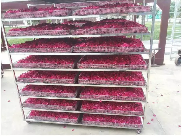 據劉先生表示,當初種植玫瑰花就是看重玫瑰花烘干成精油、玫瑰花茶的商機,與正旭廠家合作的空氣能玫瑰花烘干項目。由于空氣能烘干機沒污染,烘干過程中產生的玫瑰花精油更得到市場的女性歡迎。而烘干后的玫瑰花干色澤鮮紅,通過淘寶等電子商務平臺賣得火熱,空氣能烘干機的投資值了。