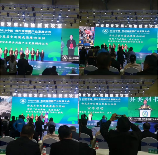 2019中國?安龍食用菌博覽會啟動儀式現(xiàn)場,中國菌物學會理事長郭良棟、安龍縣委常委魏松林等領導、專家發(fā)表演講。