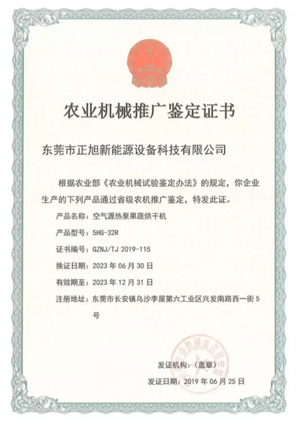 貴州食用菌產(chǎn)業(yè)呈現(xiàn)裂變式發(fā)展,連續(xù)三年規(guī)模翻番。目前,貴州省有85個縣發(fā)展食用菌產(chǎn)業(yè),其中重點縣30余個,規(guī)模化栽培食用菌30多種,調(diào)度企業(yè)800余家,其中千萬棒以上重點企業(yè)90余家,帶動大量農(nóng)戶就業(yè)增收。2020年前三季度種植規(guī)模達35億棒(萬畝)、產(chǎn)量111萬噸、產(chǎn)值144億元,年底有望突破40億棒,躋身全國前十。值得一提的是,正旭是國家能源行業(yè)標準《空氣源熱泵干燥通用技術要求》主筆起草單位,《熱泵果蔬烘干機》、《空氣源熱泵糧食干燥機》、《空氣源熱泵煙葉干燥機》、《空氣源熱泵烤煙烤房技術規(guī)程》、《戶用及類似用途空氣源熱泵采暖機組》等標準起草單位,并連年榮獲《中國熱泵行業(yè)十大優(yōu)秀工農(nóng)業(yè)烘干品牌》稱號。正旭是協(xié)同倍增企業(yè),擁有42個專利,其中4項發(fā)明專利,7個商標。2017年、2018年公司連年入選“節(jié)能產(chǎn)品政府采購清單”,并中標全國多地“煤改電”政府采購項目,獲得三項貴州省農(nóng)機推廣鑒定證書,是十三五國家重點研發(fā)計劃“農(nóng)特產(chǎn)品綠色節(jié)能干燥技術裝備研發(fā)”華南地區(qū)首家”項目示范基地。 正旭空氣源果蔬烘干機已成為《國家補貼機具》,已納入全國20個省市的農(nóng)機購置補貼目錄。