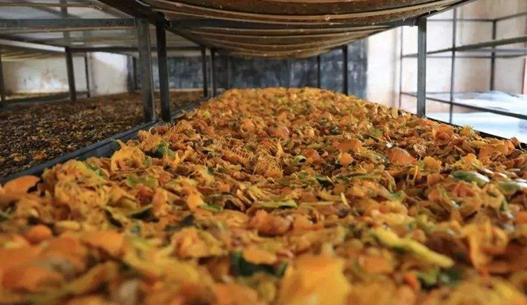 加工過程中要將瓜蔞的皮和籽分開,就需要把成熟的瓜蔞直接整體烘干,但是現在的傳統晾曬烘干效率較慢,也受天氣影響,烘干不均勻,操作時可能會造成瓜蔞表皮和瓜蔞籽損傷破裂,從而降低其藥效,因此引進一種高效的瓜蔞烘干設備顯得尤為重要。