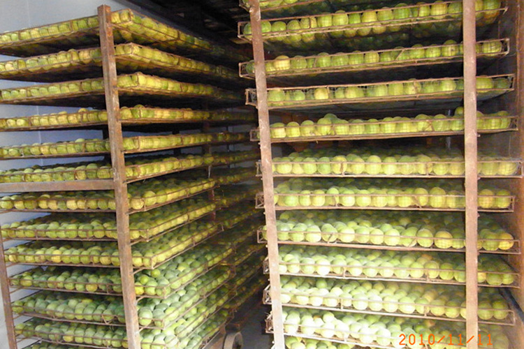 3、最后,降溫到55-60℃之間,繼續(xù)烘烤兩天,使果實(shí)的重量下降到相當(dāng)鮮果的25-30%即成干果。待其自然降溫,待冷卻后出烘干房。