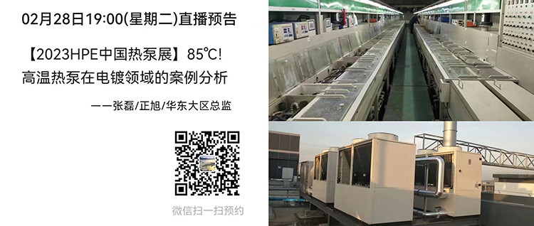 今晚(2023年2月28日)19:00,正旭華東大區總監張磊先生為您帶來一場“高溫熱泵在電鍍領域的案例分析”演講,通過其個人實戰經驗分享,助您把握新機遇、搶占高溫電鍍熱水藍海市場!精彩不容錯過,趕緊識別下方二維碼預約吧!