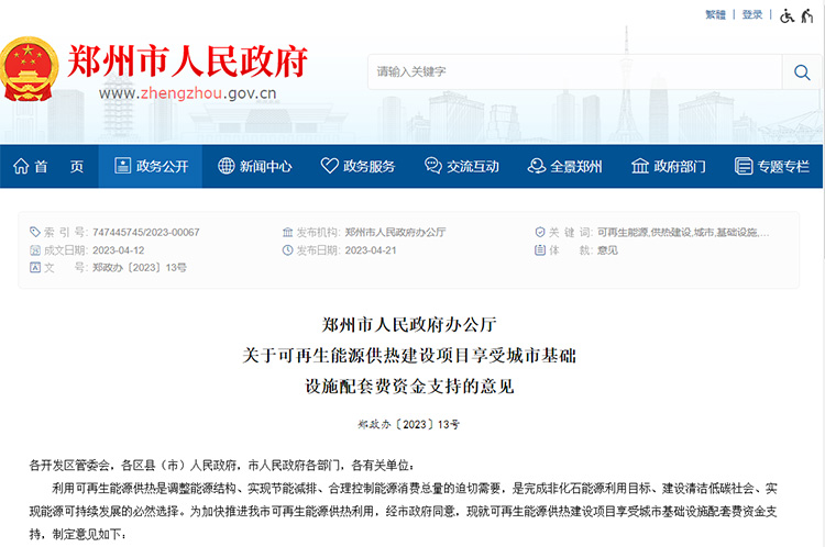 提升可再生能源供熱利用 鄭州將對相關建設項目提供配套資金支持