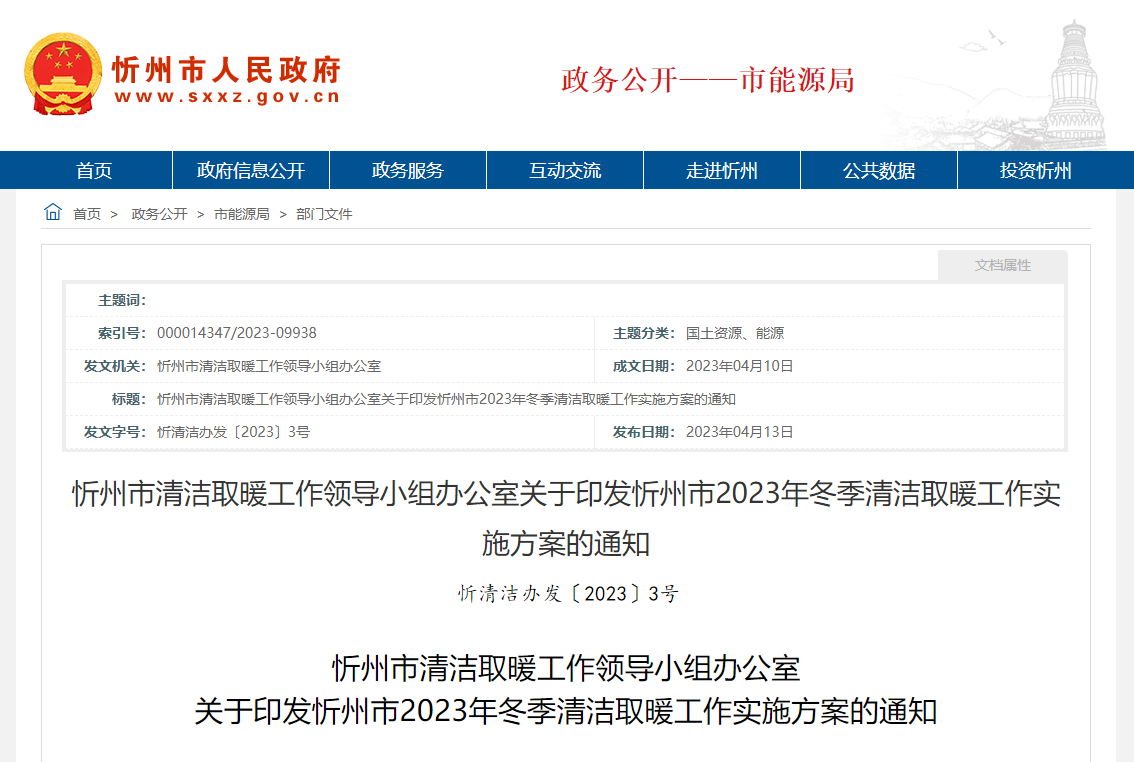 近日,山西省忻州市發布《忻州市2023年冬季清潔取暖工作實施方案》(以下簡稱“方案”),統籌推進全市清潔取暖改造工作,因地制宜實施清潔取暖改造,為全面完成地區清潔取暖改造年度任務制定了工作方向,力爭2023年采暖季前達成年度改造任務,切實保障廣大人民群眾清潔、溫暖過冬。