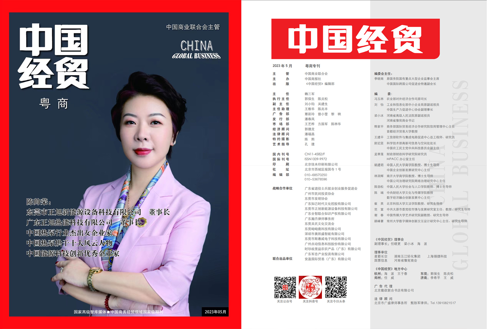 (《中國經貿》粵商專刊,花開嶺南,第一期封面人物正旭董事長陳帥榮)