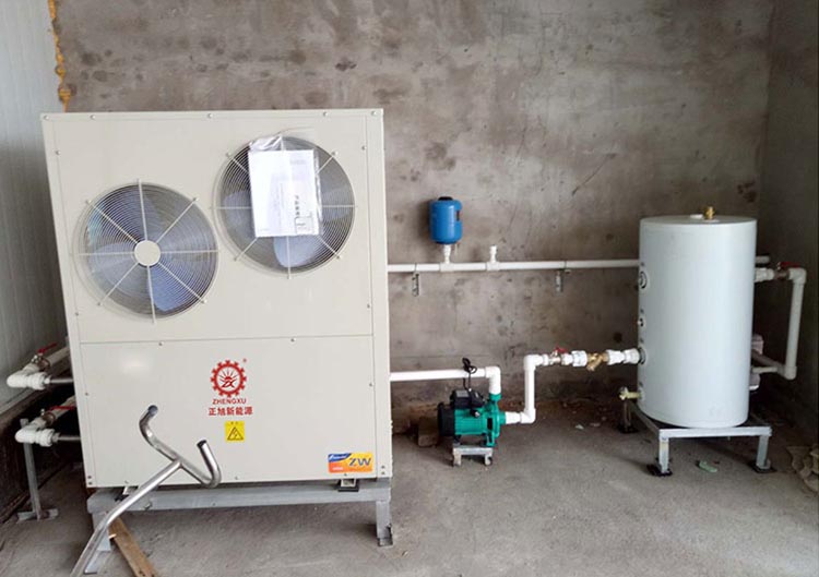 以采暖面積160平米為例,配置正旭10匹超低溫采暖機組,制熱量為23KW(環境溫度-10℃),系統所需水量23×3×60÷(4.187×3)=329.6L。系統實際水容量:以北方常用的20管為例(半徑8mm),20管每米水容量約0.3L,根據一平方約5米長的管計算,系統實際水容量約210L。所以,需要配緩沖水箱容積為:329.6L-210L=119.6L,實際安裝時選用120L的緩沖水箱即可滿足需求。