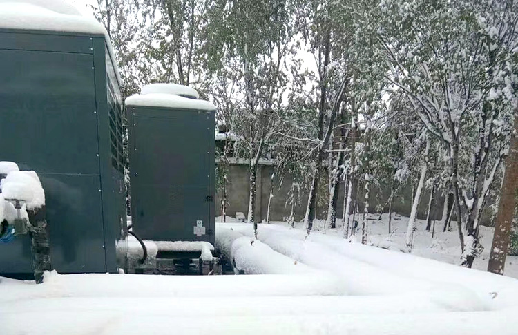 在防雨和防雪上,側(cè)出風(fēng)的采暖熱泵產(chǎn)品會(huì)好一些,受雨雪的影響較小;頂出風(fēng)的采暖熱泵產(chǎn)品,最好為其安裝防雪風(fēng)罩,防止設(shè)備停機(jī)時(shí),雪花落在主機(jī)的風(fēng)葉上并堆積,從而造成主機(jī)的電機(jī)卡死燒壞。