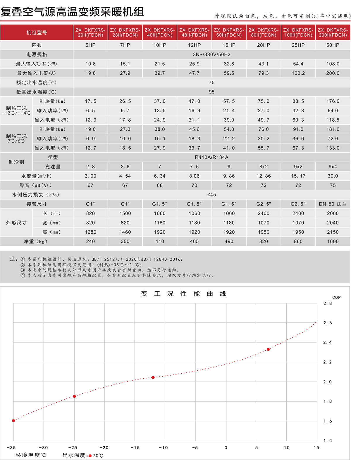 采用先進的復疊式系統,超低溫工況下,雙系統兩種制冷劑同步運行,能夠輕松實現75℃高溫熱水,滿足任意散熱器需求,運行噪音較低。
